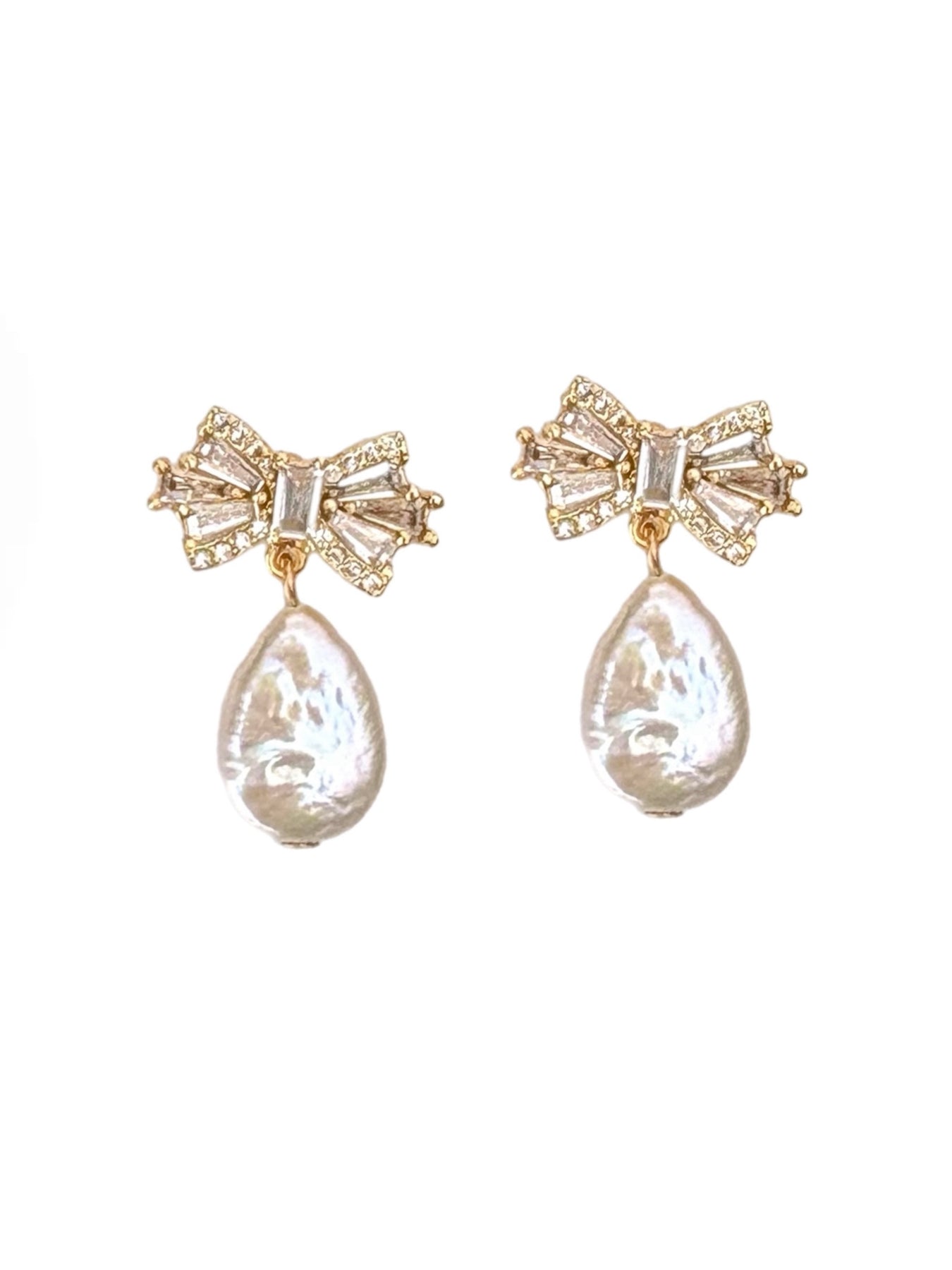 Timeless charm in every detail. These delicate bow studs finished with a luminous teardrop pearl make the sweetest dainty pair. These earrings are also lightweight and are hypoallergenic for sensitive ears.