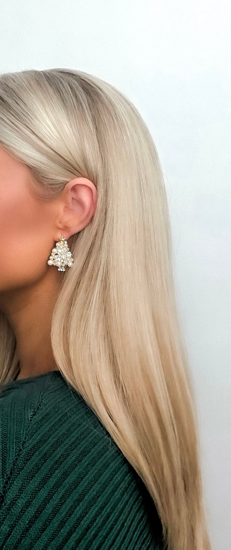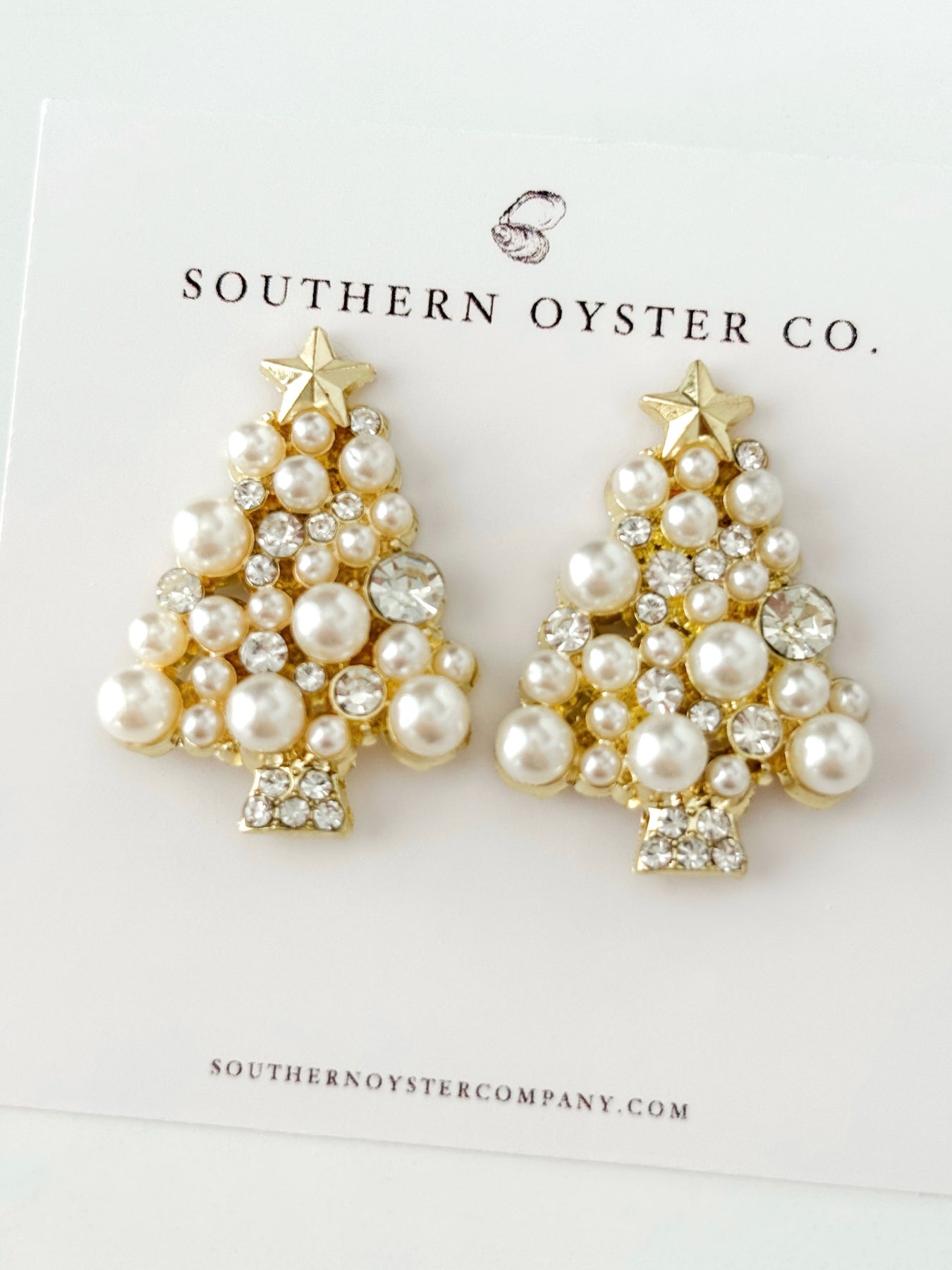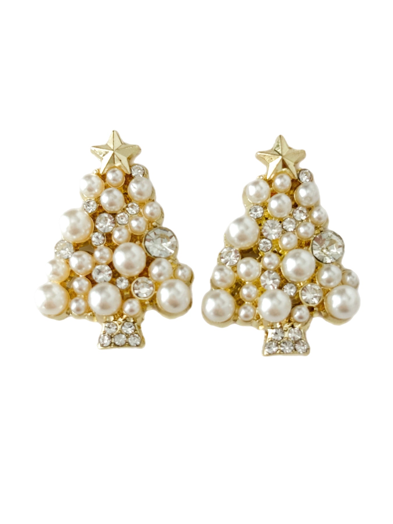 Our favorite whimsical holiday studs— Crystals that glisten, pearls that glow, and a golden star crowning it all—these gorgeous Christmas tree studs are pure festive delight. All earrings are hypoallergenic for sensitive ears.